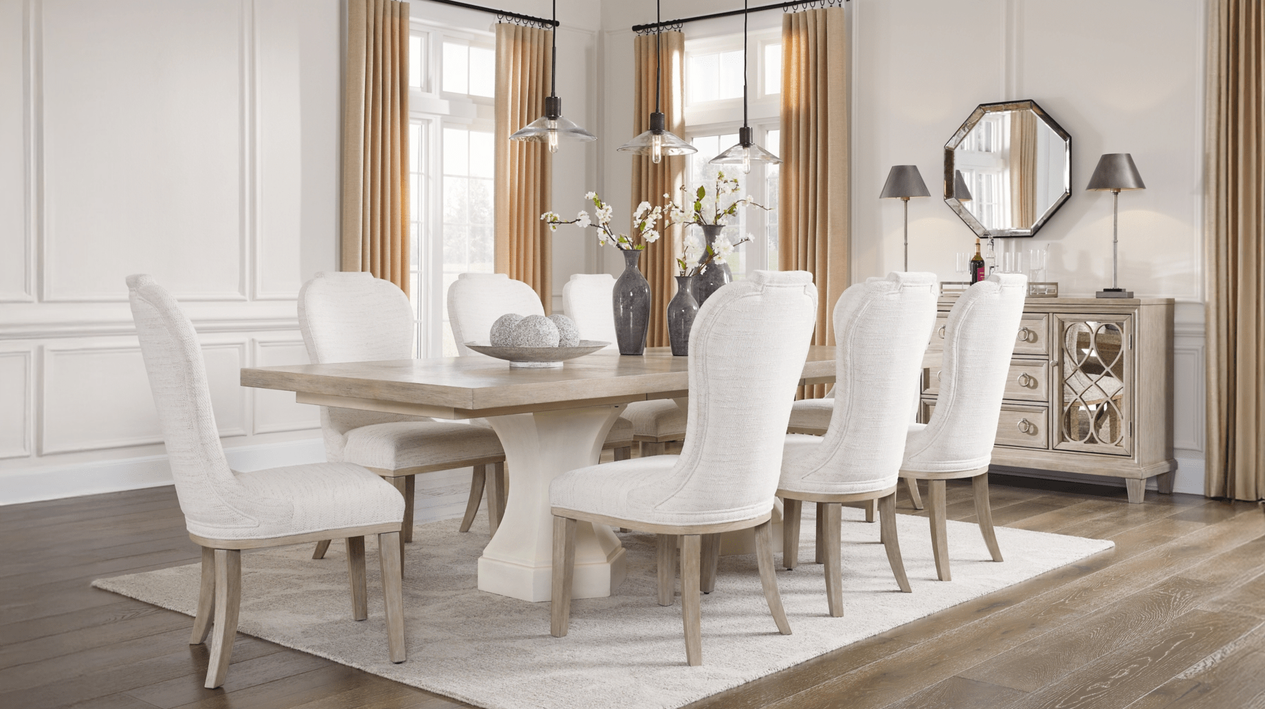 - prabangūs valgomojo baldai, prie kurių jaukiai vakarienei įsitaisys visa šeima;